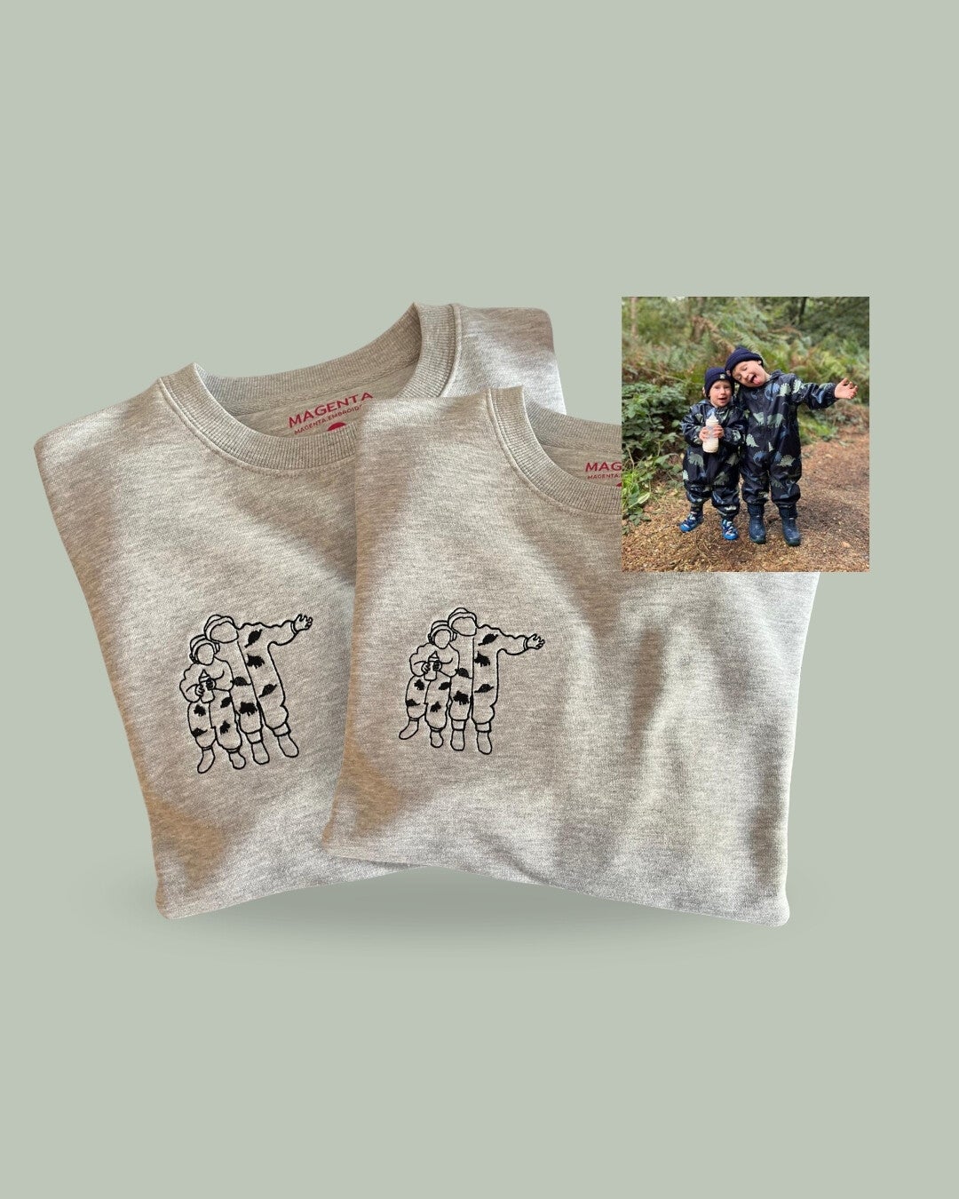 Nuestros packs personalizados con foto bordada convierten una imagen especial en dos prendas únicas, creadas para conectar historias, emociones y personas importantes en tu vida.